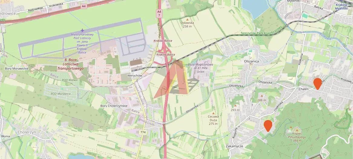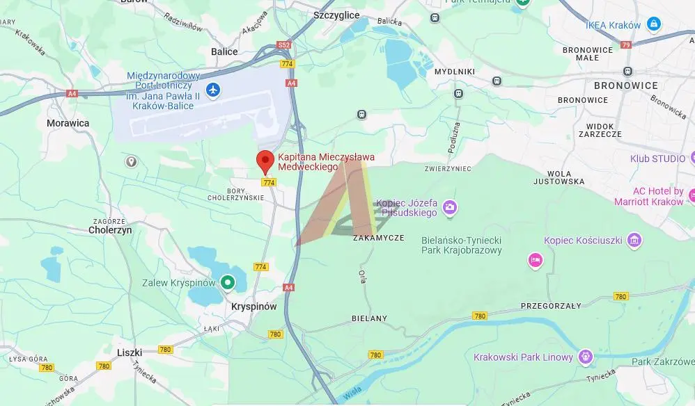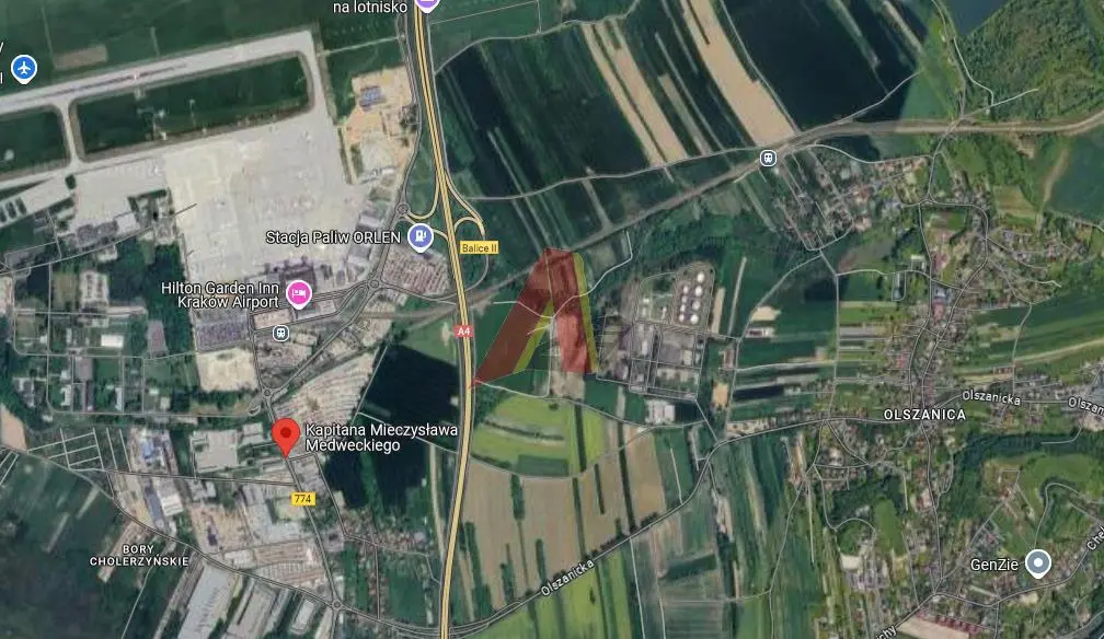 BALICE -W Pobliżu LOTNISKA , DZIAŁKA ok 3ha. Działka Objęta planem zagospodarowania o przeznaczeniu usługowym .