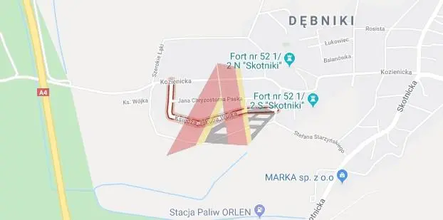 WIDOKOWA prawie 40 arowa - Skotniki Spokojna zielona okolica. Objęta planem zagospodarowania : zabudowa jednorodzinna wolnostojąca Działka jest szeroka , zbliżona kształtem do trapezu , lekko nachylona na strone południową . Około 3/4 działki pod zabudowę