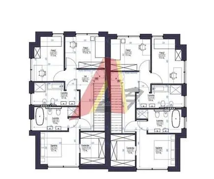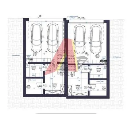 Składa się z : garażu, kotłowni, garderoby, pralni,kuchni częściowo otwartej na salon i jadalnię ,2 łazienek oraz 3 pokoi.