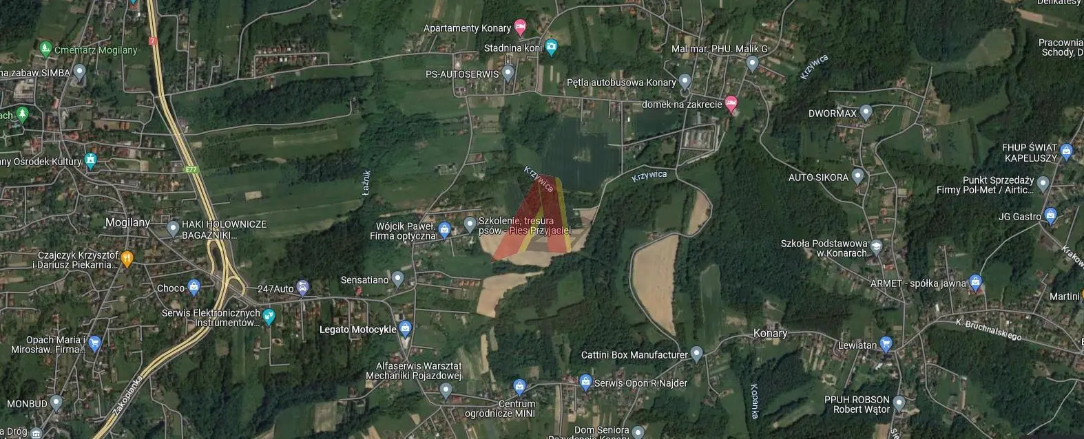 PONAD 1 HEKTAR , NA WZNIESIENIU w pobliskich Konarach gm.Mogilany Działka budowlano rolna , teren bezpieczny , nie osuwiskowy Miejscowy plan zagospodarowania dopuszczalna zabudowę bliźniaczą mieszkaniowo usługową oraz zagrodową.