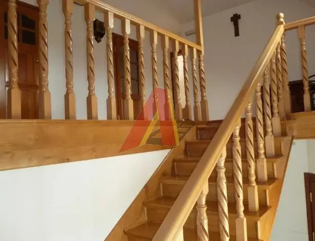 Piętro : holl, salon, 2 pokoje, łazienka, wc, kuchnia z oknem, kominek.