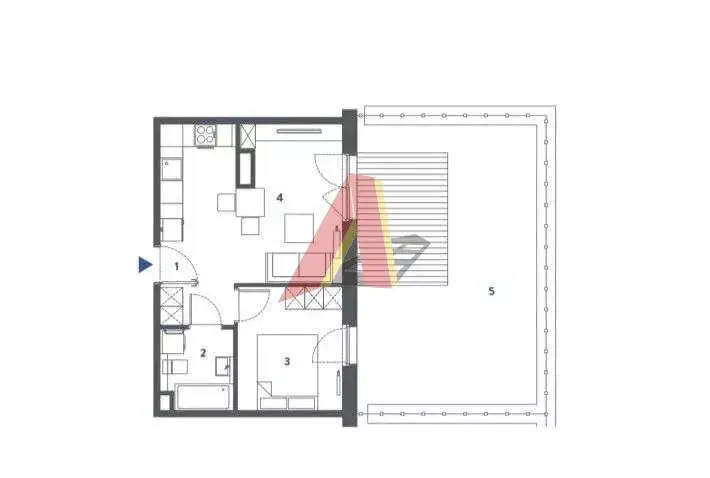 Pokój dzienny z aneksem kuchennym -17,04 m2 drugi pokój - 8,97 m2 Łazienka - 3,94 m2 Przedpokój - 4,68 m2 Do mieszkania przynależy