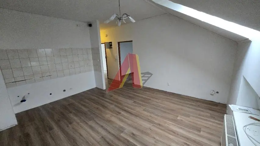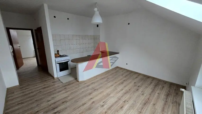 Salon z aneksem kuchennym , pokój oraz łazienka i balkon. . Na podłodze panele w całym mieszkaniu w kuchni płytki.