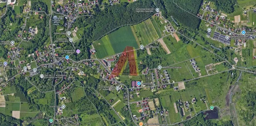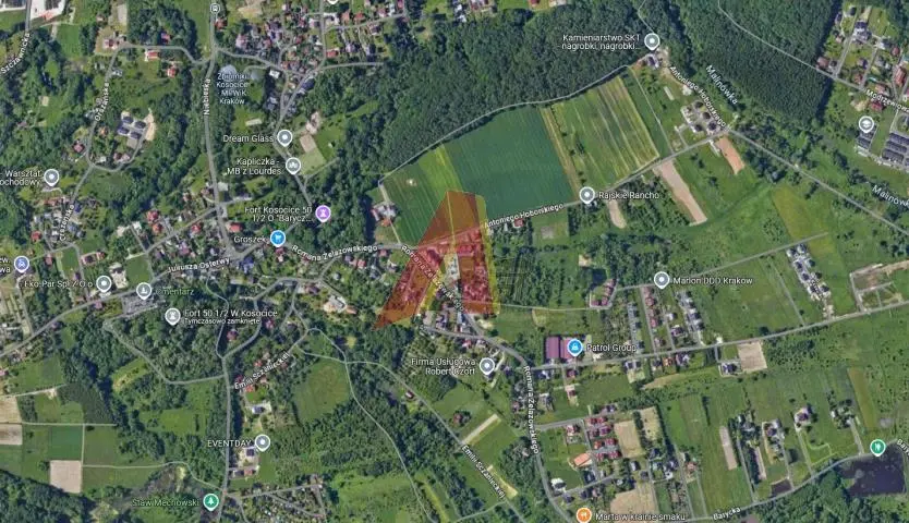 W planie zagospodarowania przeznaczona pod zabudowę jednorodzinną. W pobliżu nowe budynki jednorodzinne oraz widoki na pagórki.