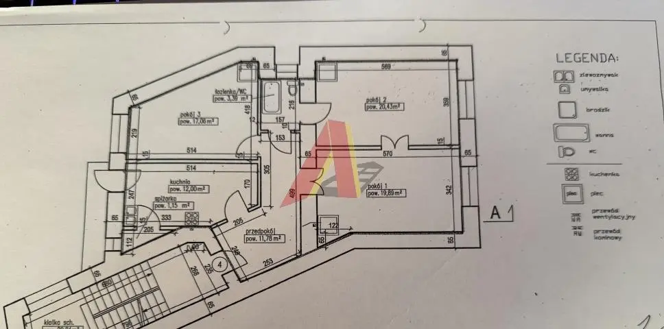 Trzy niezależne pokoje , kuchnia , łazienka z wc, przedpokój, spiżarka, duży balkon, piwnica oraz udział 25 % w strychu.
