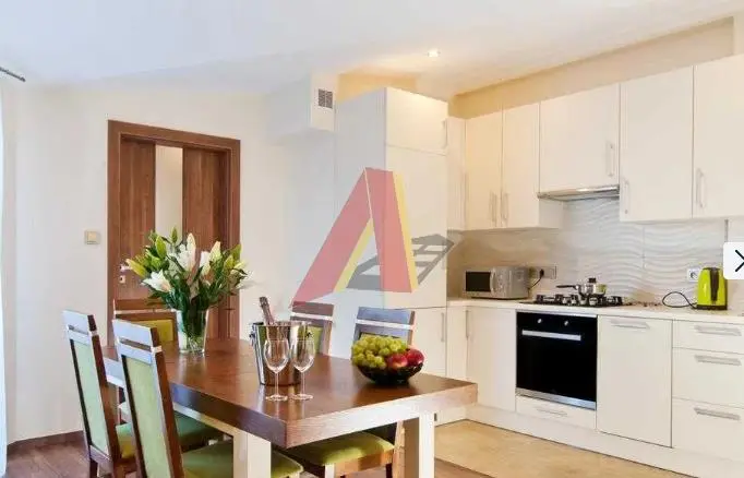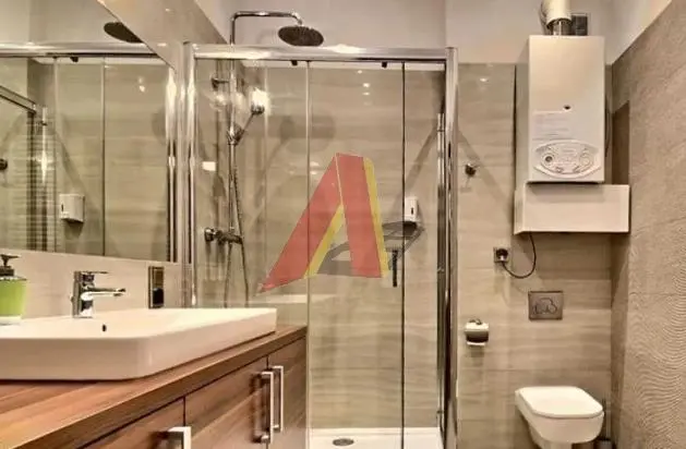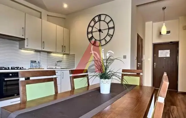 Pokój niezależny , pokój z aneksem kuchennym z zabudową kuchenną, dużą lodówką , kuchenką gazową z piekarnikiem , stołem z 6 krzesłami , łazienka z kabiną prysznicową, pralką , szafką łazienkową , wc Mały balkon z wejściem z kuchni i salonu.