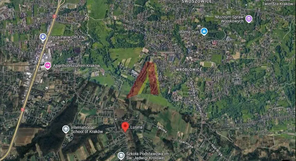 PONAD HEKTAR W LUSINIE pod zabudowę zagrodową . Piękna , szeroka , nasłoneczniona obrośnięta po bokach drzewami parkowymi.