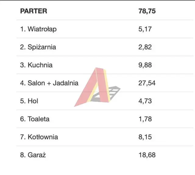 Na parterze wiatrołap , spiżarnia , kuchnia , salon , jadalnia , hol , toaleta , kotłownia , garaż .