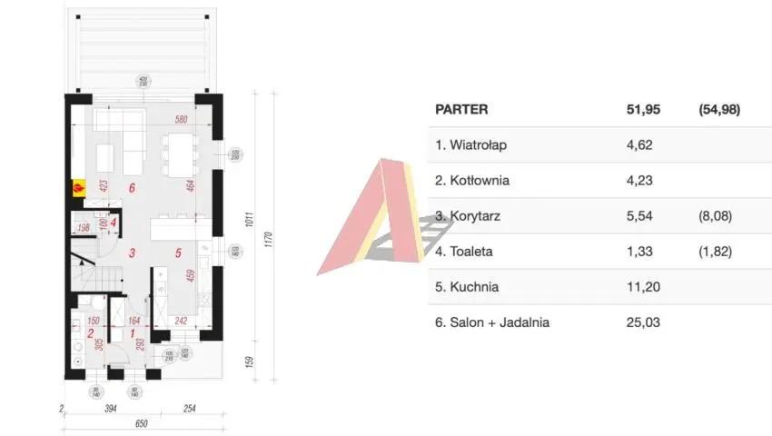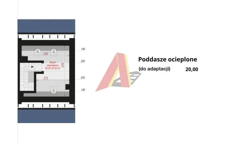 Dom składa się z :wiatrołapu, kotłowni , korytarza , wc , kuchni ,salonu ,jadalni , 3pokoi , łazienki i garderoby. Na poddaszu pomieszczenie otwarte 20m2.