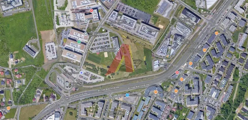 Bliskie okolice uczelni , biur oraz przystanków tramwajowych i autobusowych .