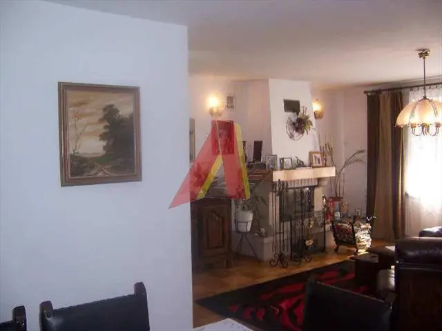 Piętro: salon z kominkiem 50 m3 połączony z kuchnią 10 m2, umeblowaną i wyposażoną; garderoba.